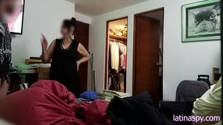 Jerking off in front of Maid, then grabbing her huge melons