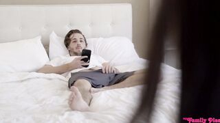Horny Boy Was Jerking Off Until His Big Ass Stepmom Came In! & Helped Him