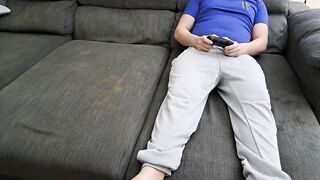 Stepsister sucks stepbrother and eats his sperm while he plays video games