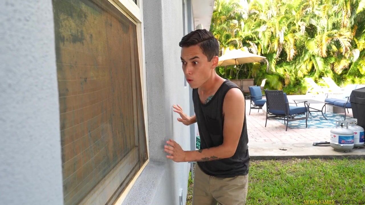 Elana Bunnz is supposed to be at work, but since the house is empty she decides to play hooky so she can get some cam girl action in. Her stepson, Juan Loco, surprises her by coming home from football practice early. Elana tries to get Juan to leave again, but when he refuses she storms off to her room in a huff. There, Juan can hear Elana talking to the computer but he finds the door locked when he tries to go in.What Elana didn’t count on was that Juan could see through the window to her bedroom. He watches and even films so that his dad can see what his wife has been up to. Later, when Elena comes out and finds Juan seated on the couch, she knows she's been caught. He says he'll stay silent for his own private show. Elena reluctantly agrees, but once she sees the size of the stiffie Juan pulls out she's a whole lot more enthusiastic.Getting on her knees, Elena commits to getting down and dirty with Juan by blowing his stiffie and then turning around to ride him in reverse cowgirl. She gets to her feet so Juan can pound her from behind as she leans over the sofa. Elena loves taking it in doggy, but she wants even more than that from her stepson. Pushing Juan onto his back, Elena rides him in cowgirl, then rolls over so Juan can spoon fuck her. Getting on her knees, Elena takes a facial of cum while telling Juan she'd like to fuck him on her cam show.