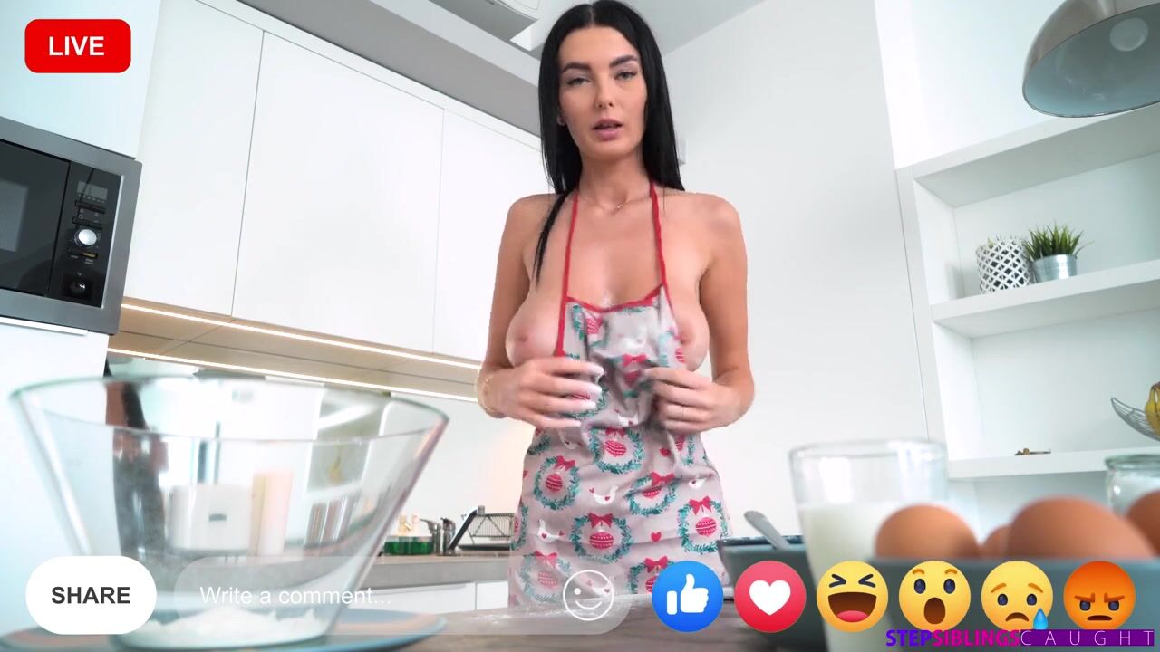 Simon Kitty has been doing naked livestreams for her followers. Today's sexy show is making muffins. Wearing only her apron, Simon gets to work. She sprinkles her big tits with flour and shows plenty of T&A as she begins mixing everything together. Just as thinks are getting good, her stepbrother Matthew Meier comes into the room.Matthew wants to know what Simon is doing, but she pulls him in to help even as she tries to explain. Matthew can't believe he's getting to see his hot stepsis in the nude, but he does as he's told and begins kneading the dough. Simon decides to make the show more interesting by getting on her knees to blow Matthew in preparation for giving him her muffin.Matthew puts Simon on the counter so the Internet can watch him eat his stepsis out. Then he shoves it in as Simon begs for more. She rolls onto her side to change up the angle of penetration, then gets on her knees on a chair so Matthew can do her in doggy. Sitting Matthew down, Simon rides him in reverse cowgirl and then in cowgirl until she's finally sated. Once Simon has taken a nice facial on her knees, she thanks Matthew sweetly for helping make her show even better.
