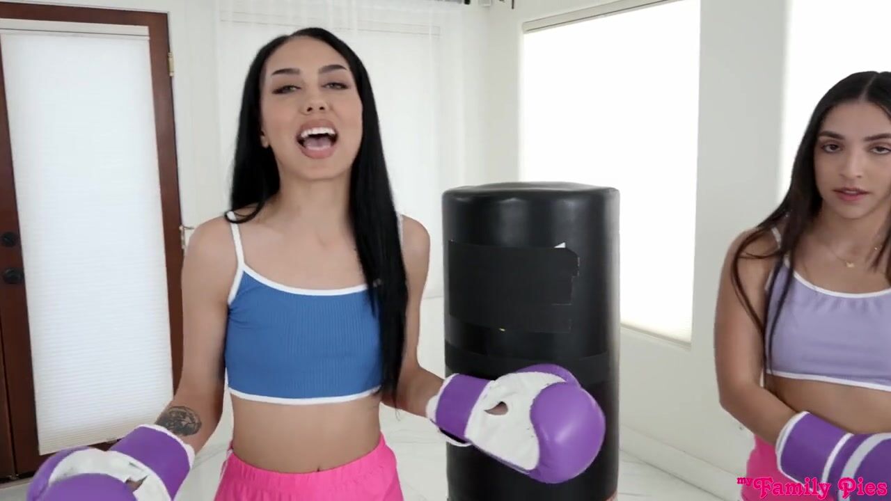 Bianca Bangs and Madison Wilde are working on boxing as a form of self defense and also because there's a fight coming up that they're very passionate about. When Parker Ambrose, Bianca Bangs's stepbrother, comes out and asks what they're doing, the girls argue about who's going to win. Later, Parker comes across Bianca training topless. Madison rips her own shirt off, too. Knowing that Parker is watching, the girls argue even harder, going chest to naked chest. Later, Parker comes to Bianca's room to see that the girls have made up. Since no one technically lost, they agree they can fuck Parker together. Crawling across the bed, they pull out Parker's stiffie and go to work together. Soon they've both removed their shirts as they slurp and suck down Parker's hardon.Bianca takes the first spin on Parker's hardon as he lays on his back. Riding in reverse cowgirl, Madison relieves Bianca so Bianca can ride her stepbrother's tongue. Once Bianca has sucked the trio's juices from Parker's cock, Madison gets on her knees to eat Bianca out while Parker does her in doggy. Bianca is the final recipient of Parker's ministrations as she spreads her thighs for him. He rewards her dedication with a creampie that leaves her dripping with her stepbrother's love.