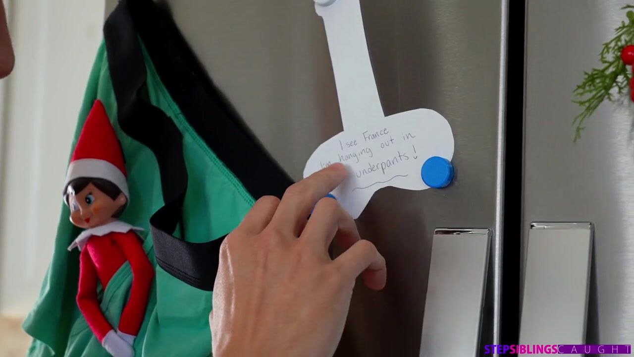 Kimmy Kimm is really mad her stepbrother Parker Ambrose has touched the magical elf. She reminds him that the magic will be ruined if he touches the toy. Later, Parker finds a note that he needs to find Kimmy. When he discovers her, it’s in bed with two of her besties, Bianca Bangs and Sawyer Cassidy, posed in a group of provocative positions.The girls are dressed as Christmas elves, and most importantly they’re free use for Parker’s pleasure. Parker tests the limits with hands on tits, and then he gets Kimmy on her knees for a BJ. All three girls lay down on their backs so he can dip his dick in each of their mouths in turn. Rearranging the girls on their backs so their bottoms are at the edge of the bed, Parker gets his stiffie wet in Bianca’s pussy. He’s interrupted by his dad yelling for him.Once Parker has put his dad off for now, the elves magically come to life and work together to blow him! Then Bianca and Kimmy go at it with each other as Parker gets a titty fuck from Sawyer. Cassidy climbs aboard to ride the D while Parker finger bangs Kimmy and Bianca. Packer lays down next with Bianca riding his face and Kimmy on his dick in reverse cowgirl as she eats Sawyer out. Bianca gets it next, on her knees as she feasts on Kimmy’s coochie. Kimmy slides forward to receive her stepbro’s cum shot, just as Parker’s dad walks in and sees what’s happening.