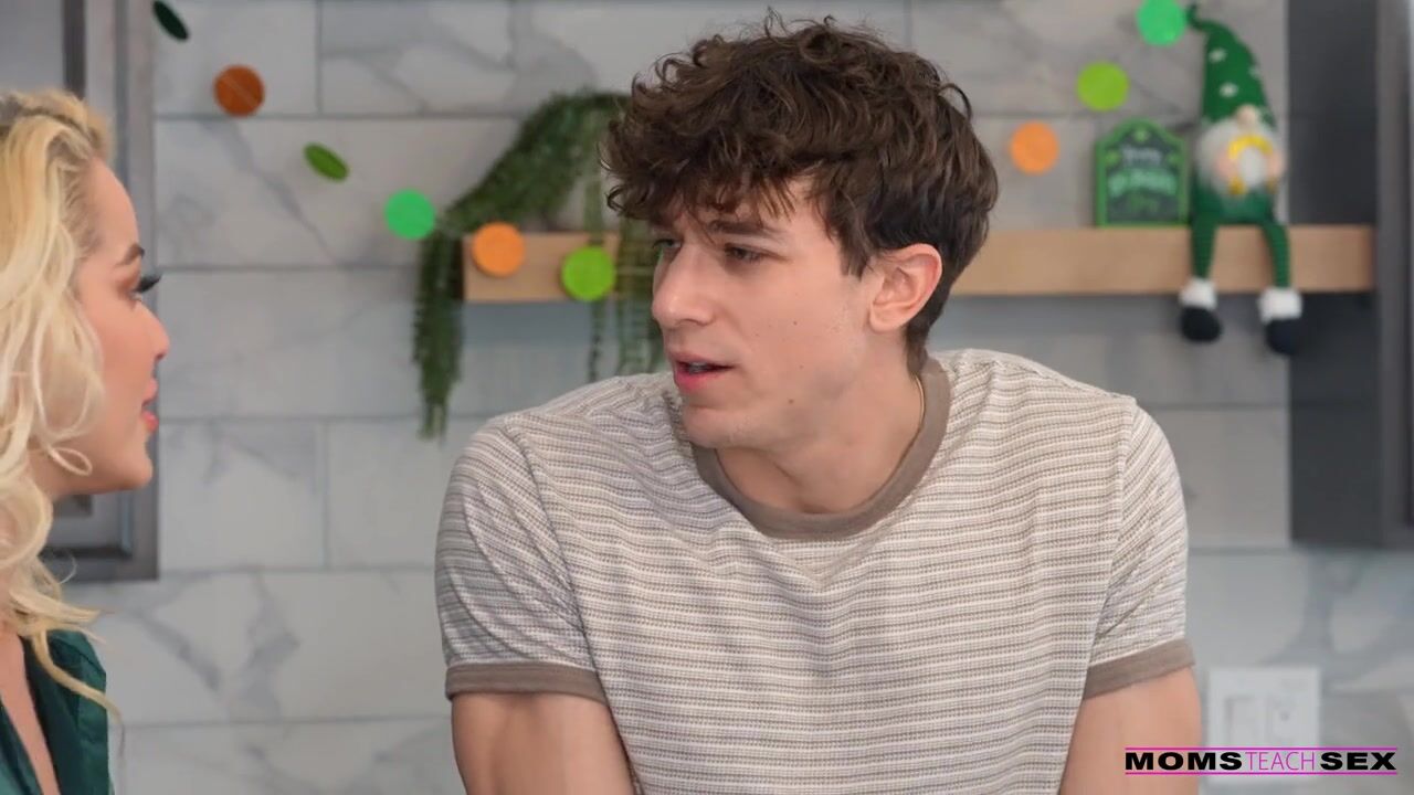 Cherry Kiss is making shamrock milkshakes for St. Patrick's Day when her stepson Parker Ambrose asks what she's up to. Cherry tells him he has to put on some green or she's going to start pinching him. When Parker returns, Cherry gives him the milkshake complete with whipped cream on top. Then she walks up to Parker and tells him she wants to taste his cream.Parker isn't about to say no to such a sexy offer. He pins Cherry against the kitchen island and slams into her from behind. Cherry lifts a leg, giving Parker better access to her cooch and making it easy to rub her own clit. Then she drops to a crouch so she can enjoy a deep throat BJ and some serious ball sucking.Urging her stepson onto his back, Cherry climbs on top of him and sinks down for a stiffie ride. She climbs onto the counter and turns onto her side so Parker can shove back home. Then Cherry rolls onto her back so her stepson can make her cum one last time. When Parker pulls out, Cherry holds up a milkshake for him to cum on so she can enjoy her treat topped with her stepson's cream.